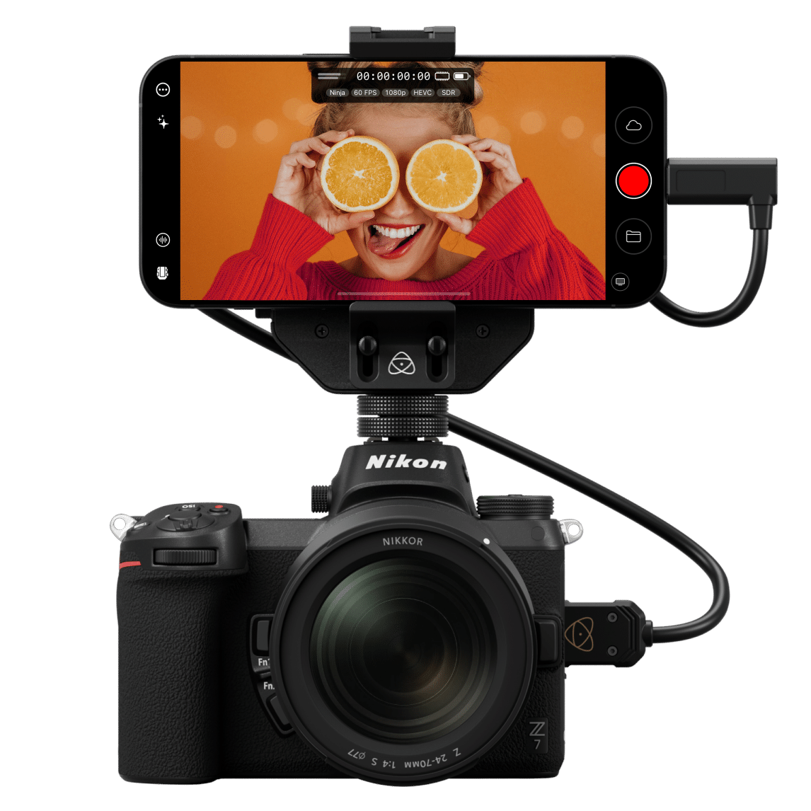 Today’s iPhones have amazing displays, cutting-edge Wi-Fi and 5G connectivity. With Ninja Phone you can take advantage of all that tech in your pocket to give your HDMI-equipped camera DSLR or mirrorless camera state of the art monitoring and social media connectivity. Just attach it to a compatible iPhone (or iPad*), plug in your camera, install the Mavis Camera app, and you’re Ninja’d up and ready to go!