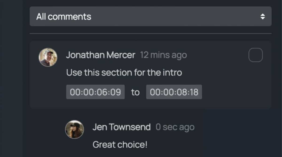 Reviewers can leave timestamped comments and approve work directly