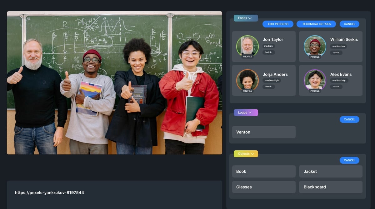 Automatically generates detailed, accurate descriptions of the contents of a given segment of footage. These descriptions can then be searched from the ATOMOSphere browser user interface, along with other forms of metadata including file information, user-defined tag fields and text from speech transcriptions.