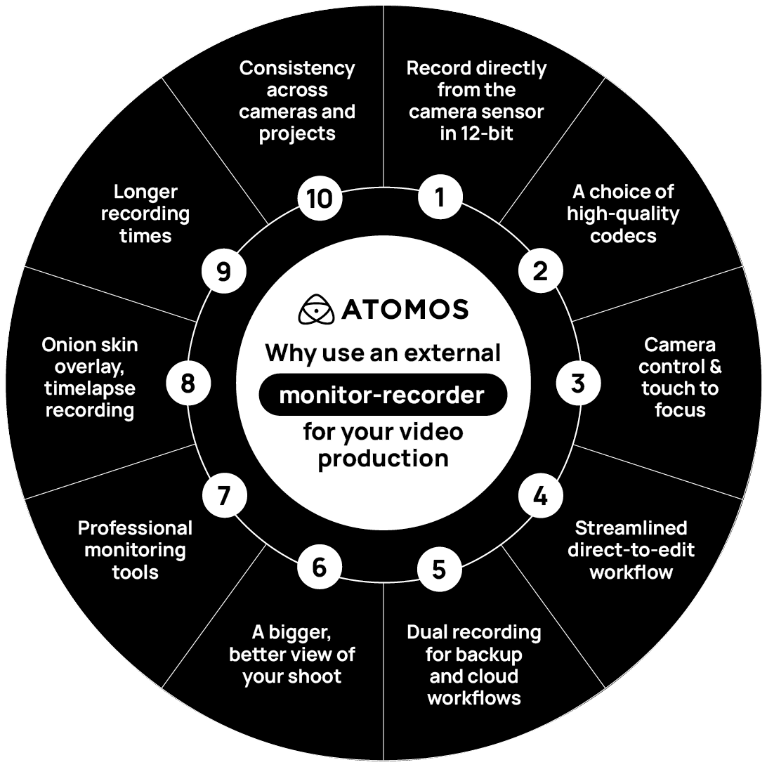 A strong backup strategy is essential in modern production. Atomos recorders can capture simultaneously with your camera’s internal recording, instantly creating two copies of your footage.