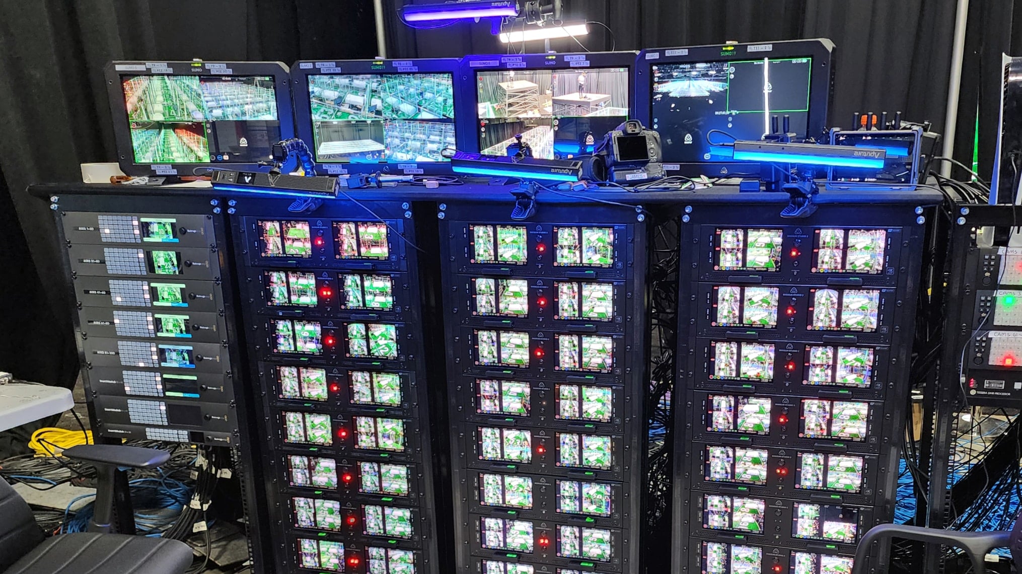 Once camera numbers really started to grow as we planned for our second ‘1-100’ video, we knew we needed to become even more efficient. This is where the Shogun Studio 2 came into play. Having 2 monitors on board, being rack mountable, having front-load SSD slots, accepting timecode, and not taking up a ton of room, it was a clear-cut choice. We doubled down and brought in racks and racks of them — 46 units in total on the second ‘1-100’ video. In short, they gave us a super-efficient way to record and monitor vast quantities of cameras, as well as being modular, allowing us to easily expand or reduce our racks based on the video needs. Plus, as an added bonus, it looks really cool on camera when they’re shown in any control room or BTS shots. Naturally, there were many other technical challenges, but I’ll have to save those for another time.