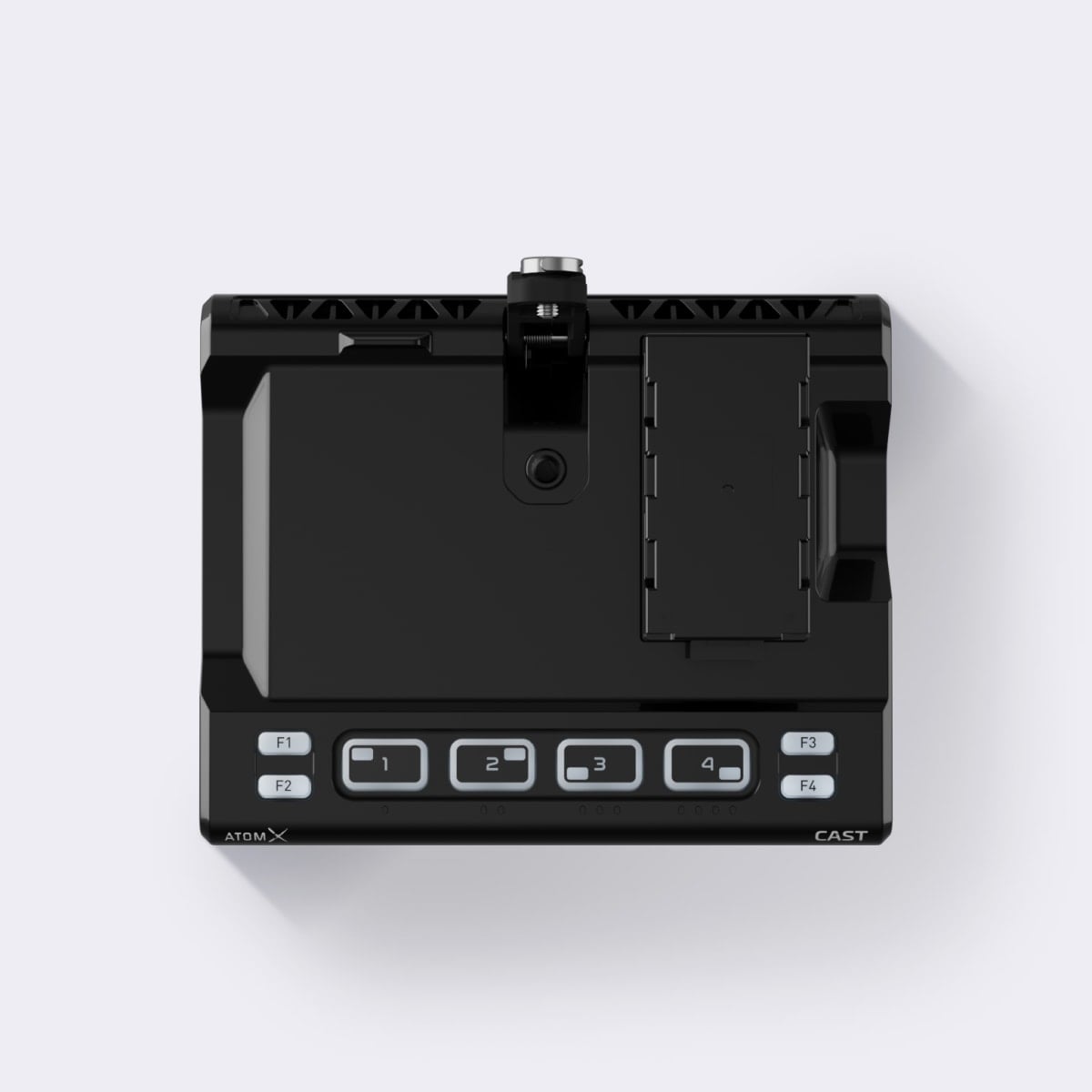 The AtomX CAST docks directly to the Ninja V or V+ via the AtomX expansion port, creating an all-in-one device for monitoring, switching, recording, and streaming. When not in use for switching, the Ninja V/V+ operates as a standalone HDR monitor-recorder.